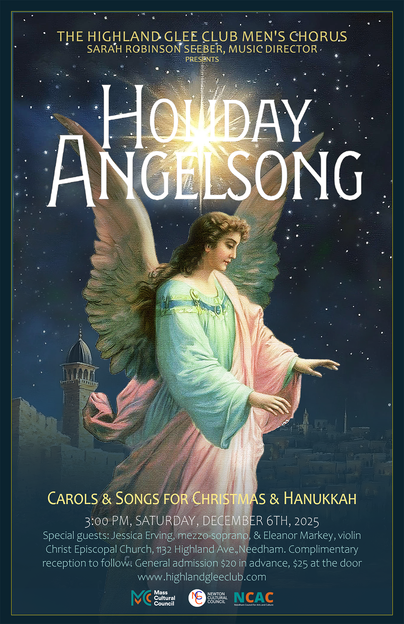 Warm and brighten up your holiday season this year with The Highland Glee Club Men's Chorus! We proudly present Holiday Angelsong, a program of some of the most beautiful music ever written for the holidays. Palestrina, Franck, Schubert, Praetorius, Mendelssohn, Rubinstein, and our own Dan Wulf! With star tenor Connor Vigeant and special guests mezzo…