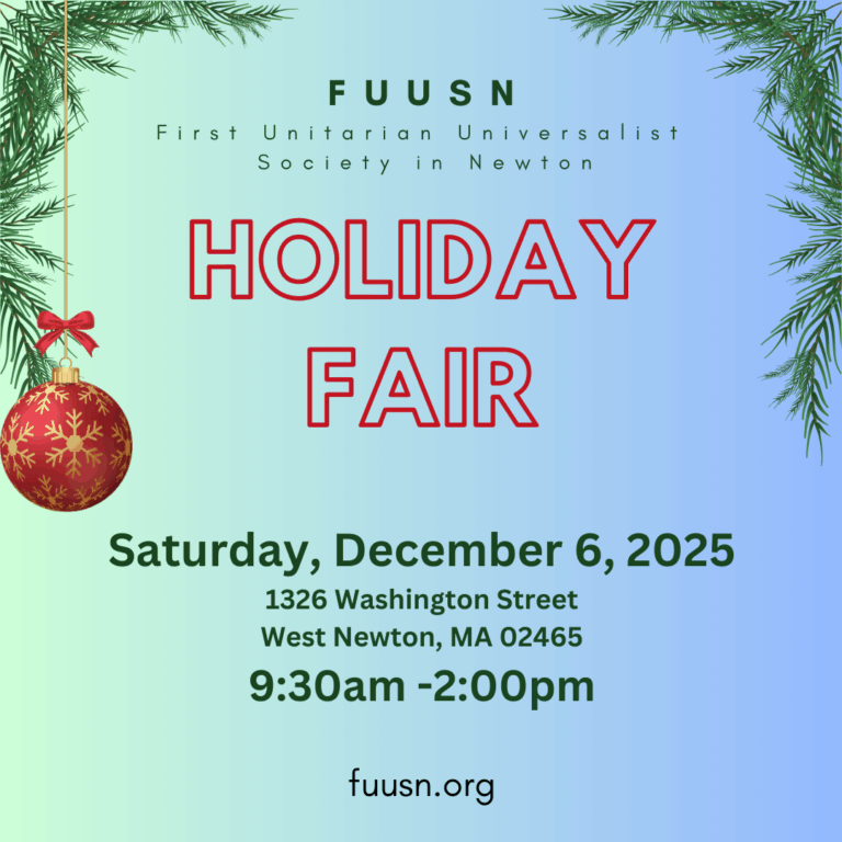 The FUUSN Holiday Fair is a fun, festive event on Saturday, December 6. Join us as the Parish Hall is transformed into a Holiday marketplace. Shop for gifts, toys, homemade baked goods, wreath,s and swags. The Baked Goods table is overflowing with homemade cookies, cakes and sweets, pick up a fresh green wreath, topped with a…