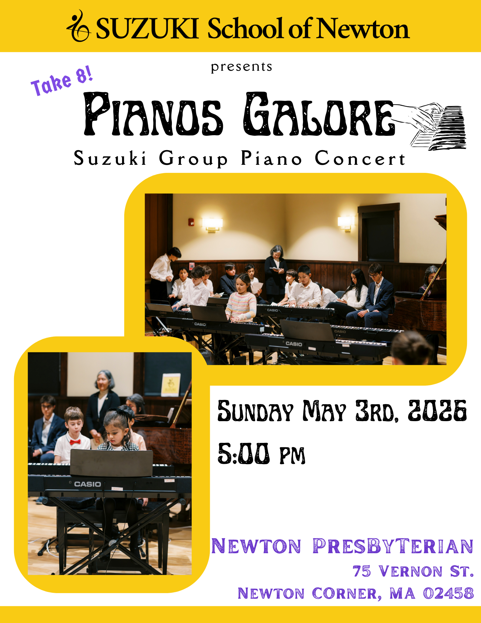 Newton Presbyterian Church 75 Vernon St., Newton, MA, United StatesSuzuki School of Newton piano students present a group concert of classical repertoire.