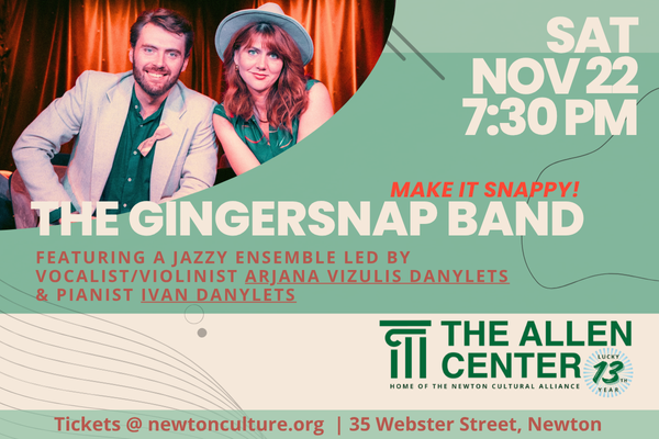 Join us as The Allen Center transforms into a cozy Jazz Club, with table seating, drinks, and bar snacks available to enjoy during the show. The Gingersnap Band keeps it snappy with a six piece ensemble and soulful renditions of jazzy classics you won't want to miss.