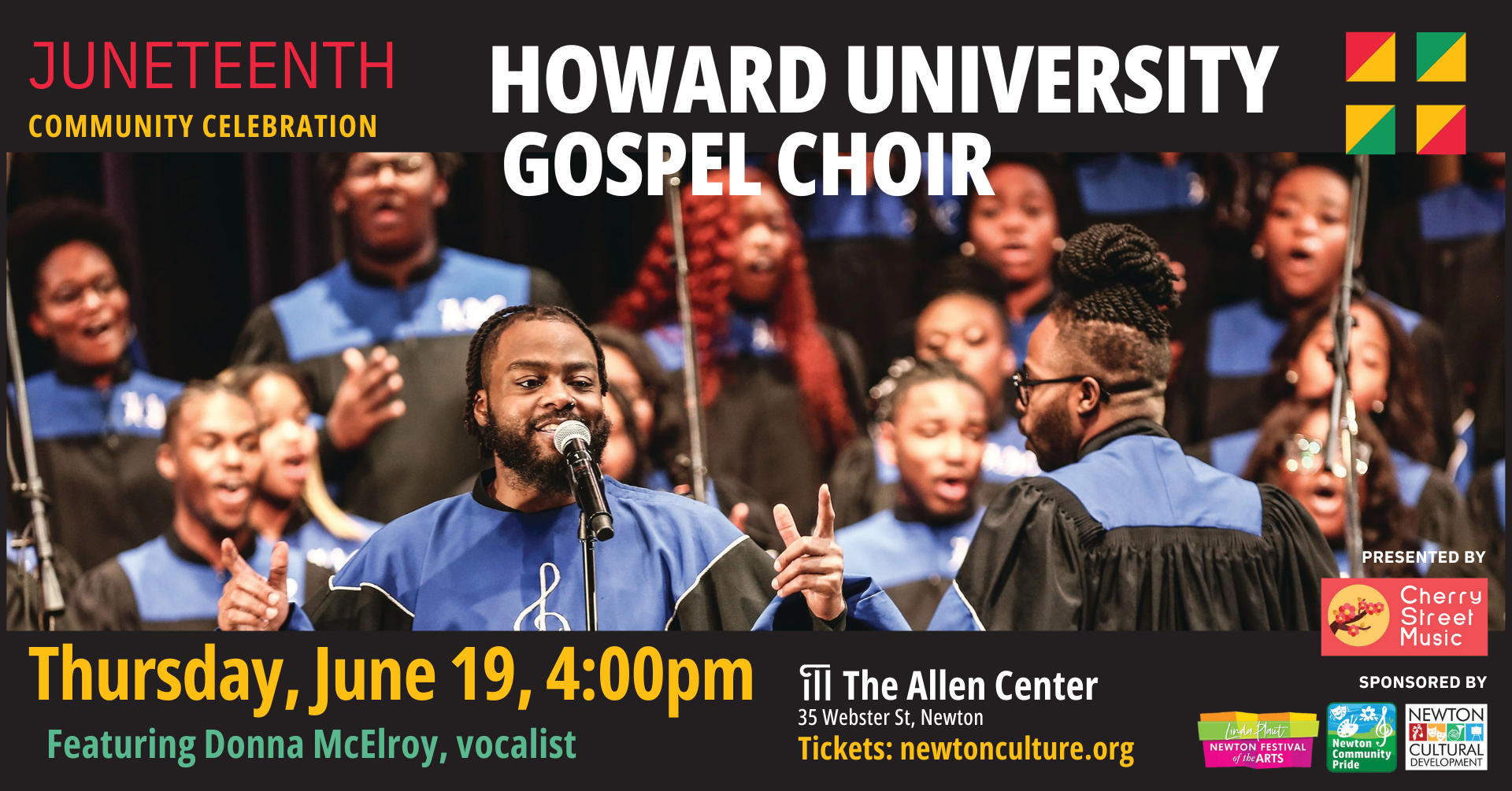 The Allen Center 35 Webster St, WEST NEWTON, MA, United StatesCherry Street Music, the chamber music program of The Allen Center presents Lift Every Voice: A Juneteenth Musical Celebration featuring the Howard University Gospel Choir, with a guest appearance by singer Donna McElroy. Join us at The Allen Center on Thursday June 19th at 4pm to honor Juneteenth and the rich history and culture it represents. Don't miss out on this…